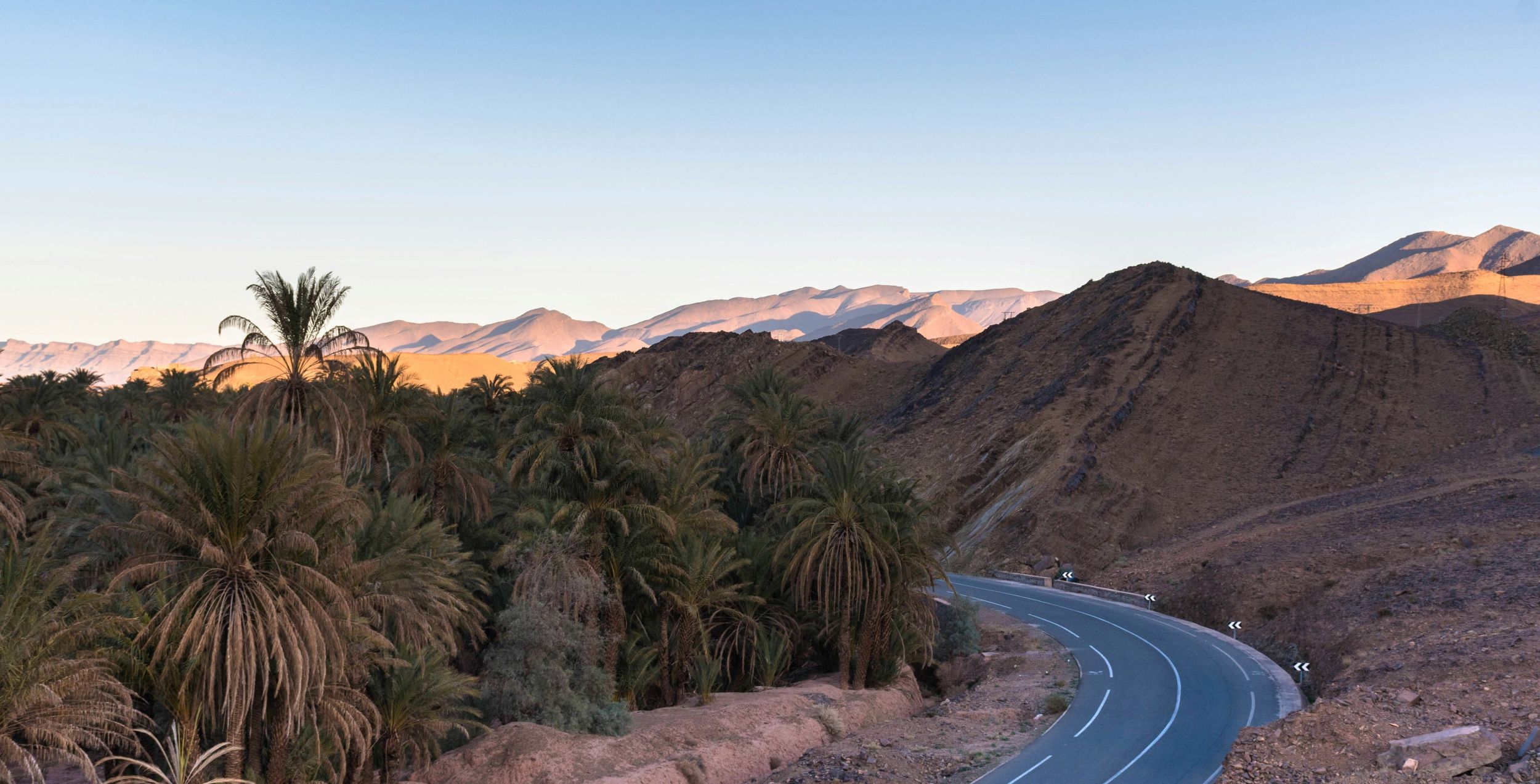 Start your 3-day desert tour from Marrakech at 8:30 AM, leaving from your hotel and heading south toward the stunning Erg Chegaga dunes. You’ll cross the impressive Atlas Mountains and pass through beautiful Berber villages. The views from the mountains, looking over the valleys and villages surrounded by rough landscapes, are truly amazing. After crossing the Tizi-n-Tichka pass (2,260 meters), the highest point in North Africa, make a stop to visit Kasbah Telouet, also known as the Palace of Glaoui, which was once the home of the El Glaoui family. Continue your journey down the mountains until you reach Kasbah Ait Ben Haddou, a UNESCO World Heritage Site famous for being featured in many Hollywood movies. After lunch, head further south, passing through Ouarzazate and crossing the Anti-Atlas Mountains to reach Agdz, a lovely oasis town known for its palm trees and delicious dates. As you go down the Tizi-n-Tinfifite pass (1,660 meters), enjoy the breathtaking views of the Draa Valley. Retire for the night in a delightful guest house overlooking the valley.